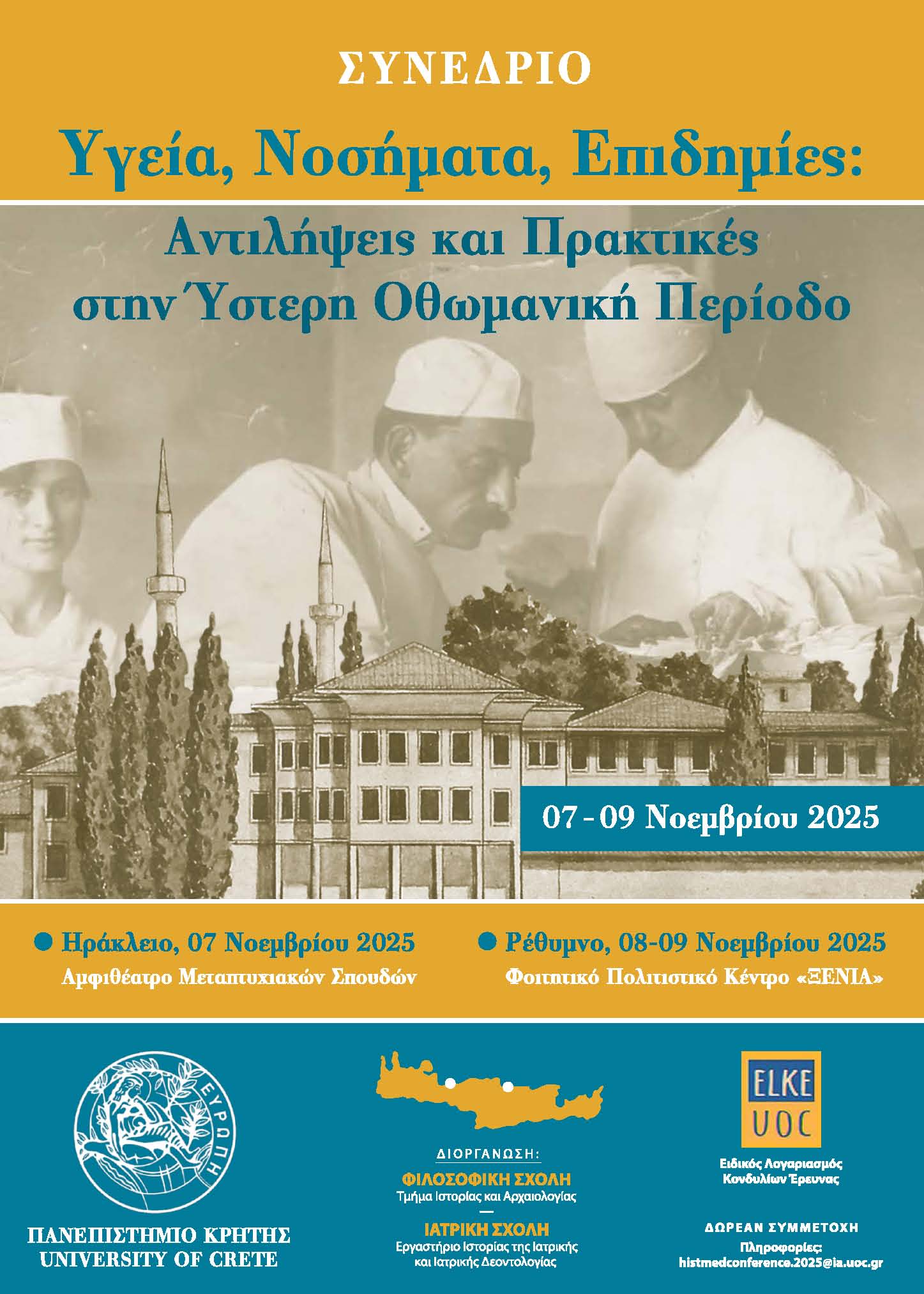 Συνέδριο «Υγεία, Νοσήματα, Επιδημίες – Αντιλήψεις και Πρακτικές στην Ύστερη Οθωμανική Περίοδο», 7-9/11/25