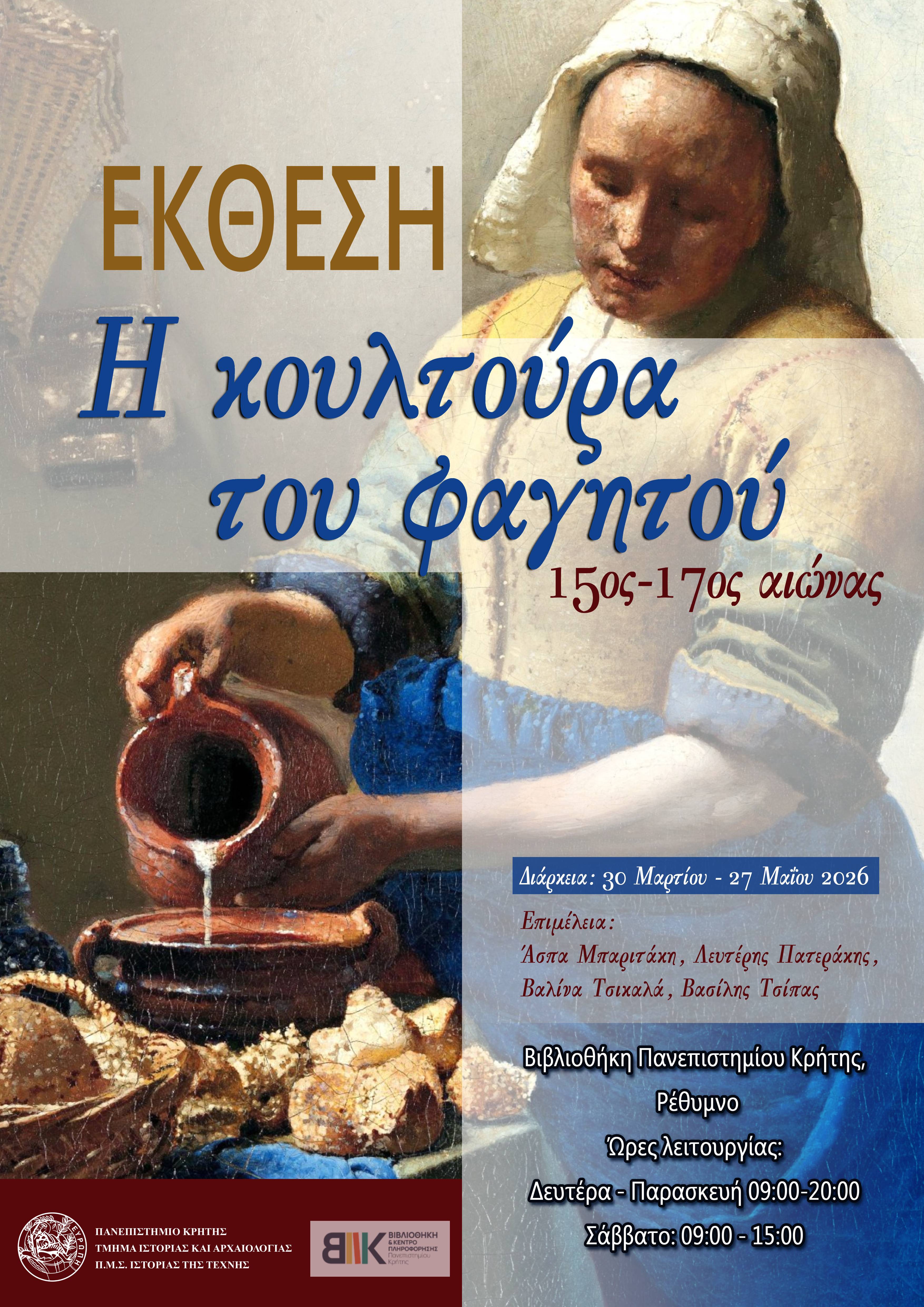 Η Έκθεση διοργανώθηκε στο πλαίσιο της πρακτικής άσκησης του Προγράμματος Μεταπτυχιακών Σπουδών στην Ιστορία της Τέχνης του Τμήματος Ιστορίας και Αρχαιολογίας του Πανεπιστημίου Κρήτης και πραγματοποιείται στη Βιβλιοθήκη Πανεπιστημίου Κρήτη, Ρέθυμνο, Πανεπιστημιούπολη Γάλλου